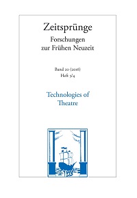 For lack of a site, and also to save on expenses. Knowledge on Stagecraft. Joseph Furttenbach and the Limits of Cultural Translation, in: Jan Lazardzig, Hole Rößler (Hrsg.): Technologies of Theatre: Joseph Furttenbach and the Transfer of Mechanical Knowledge in Early Modern Theatre Cultures (= Zeitsprünge. Forschungen zur Frühen Neuzeit, Bd. 20, H. 3/4 2016). Hg. v. Jan Lazardzig u. Hole Rößler. Frankfurt a.M. 2016, S. 367-386.